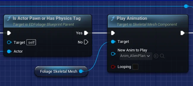 If the criteria is met, we play an animation on the Foliage Skeletal Mesh.