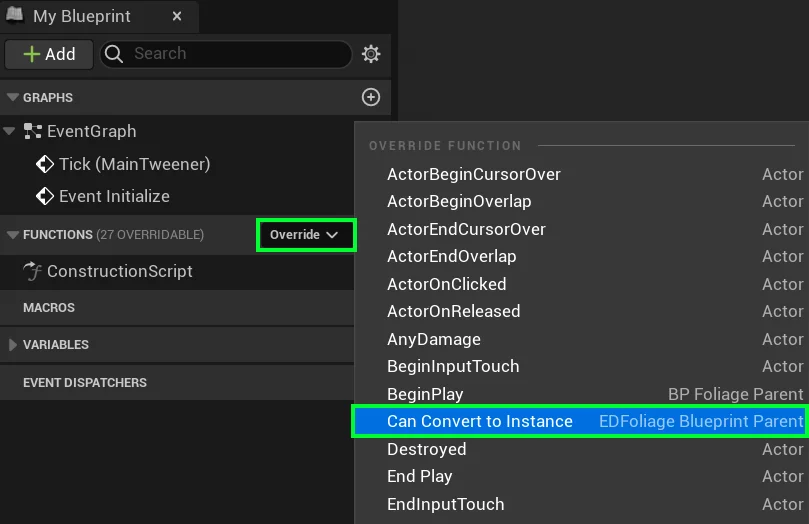 We designed a Function called “CanConvertToInstance” for the purpose of allowing you to control when your blueprint’s conversion is allowed to take place.