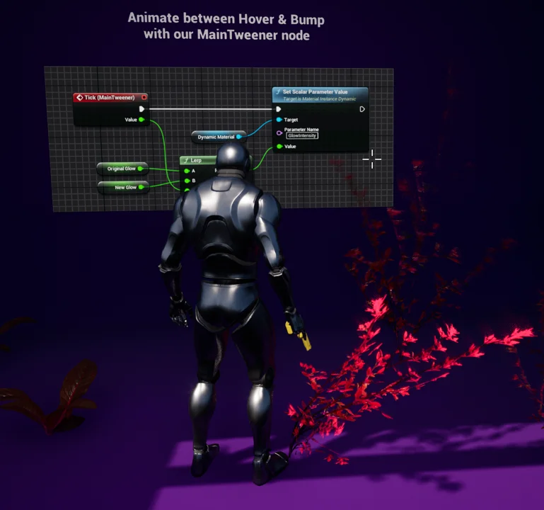 In this example, you’ll learn how to make your plant’s material react with a bump or hover animation when interacted with.