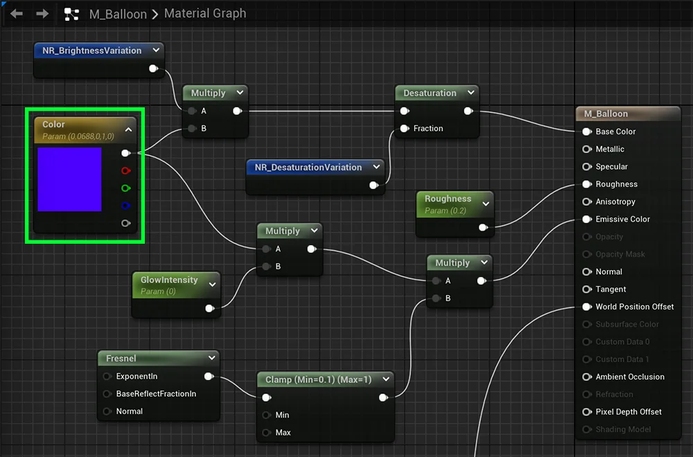 Here we used a Vector Parameter called “Color“.