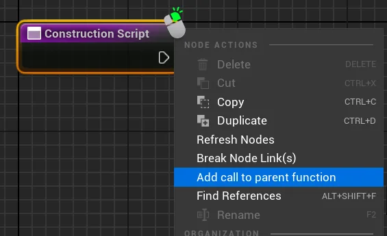 To do this, simply right click the Event BeginPlay or Construction Script and click “Add call to Parent Function“.