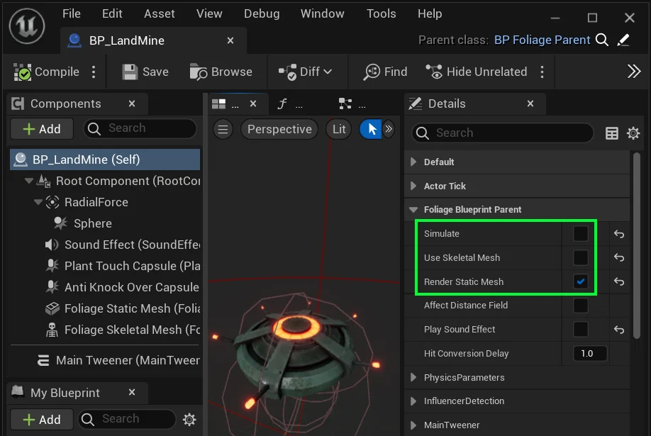 However, there are some cases when you may want a static type of foliage which utilizes the blueprint functionality rather than needing physics.