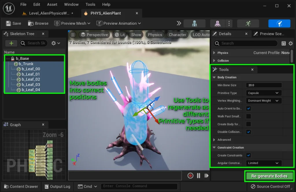 While you are free to do what you want with your physics asset, there are some recommendations we’d like to provide to make it easier for you to produce similar results to our own physics assets.