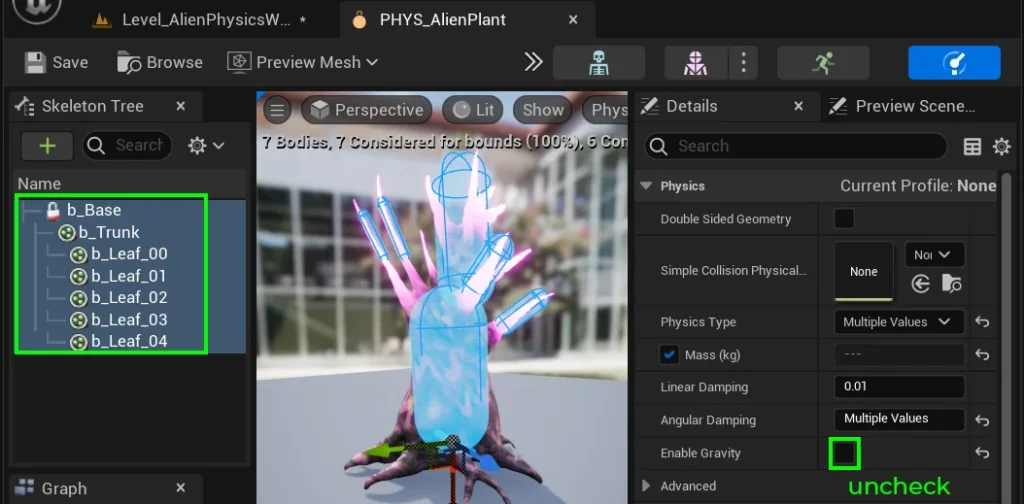 Doing this will ensure that the plant doesn’t immediately fall over under the weight of it’s own gravity when it is converted from a Foliage Instance to a Foliage Blueprint.