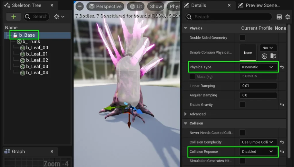 Select the root bone’s Physics Body, and set its Physics Type to Kinematic.