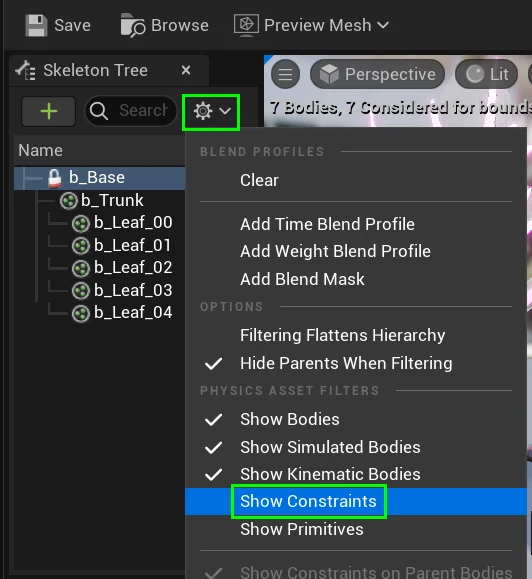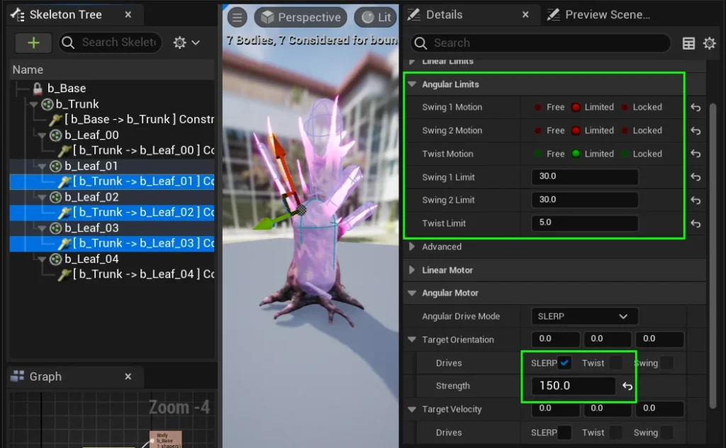 • Optional: Physics Asset constraints have SLERP Angular Drive for ‘spring’ effect