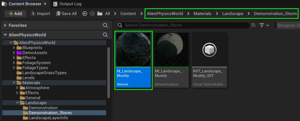Navigate to Content / AlienPhysicsWorld / Materials / Props / Grass.