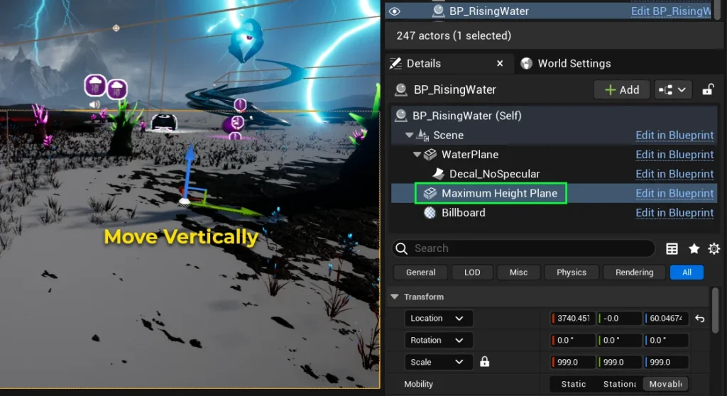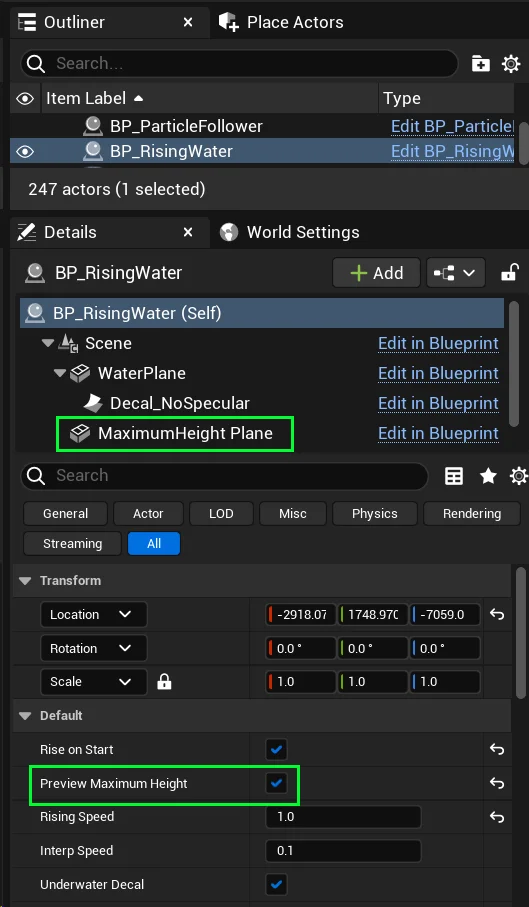 Next, select the BP_RisingWater blueprint in your level.