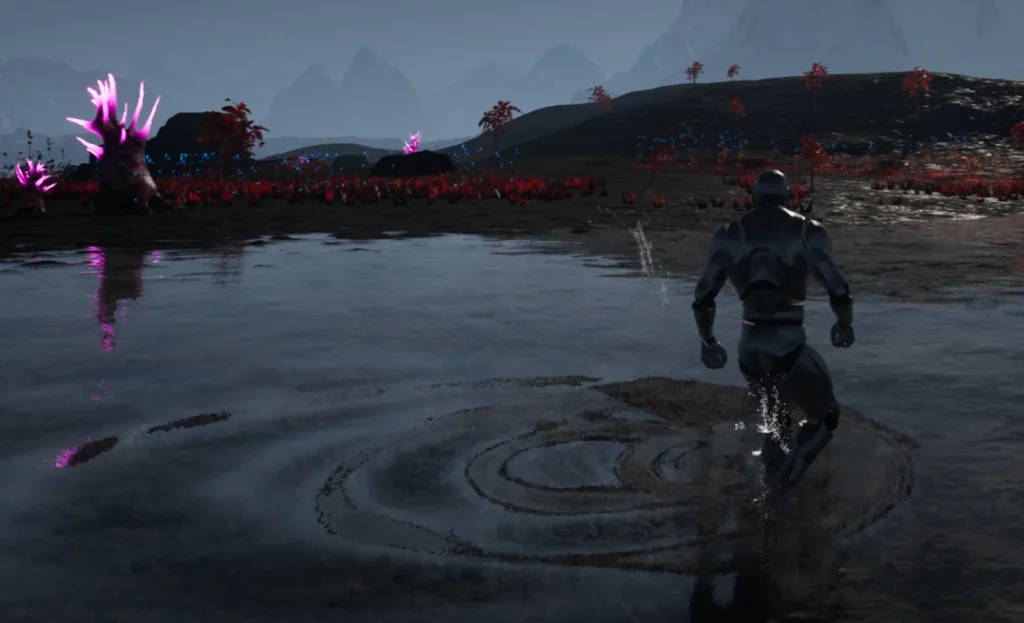 To add player and object-generated ripples, you will first need to add the Runtime Virtual Texture volume to the level.