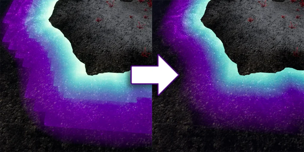 They now look very pixellated and blocky, which affects the look of our water’s material edge glow.