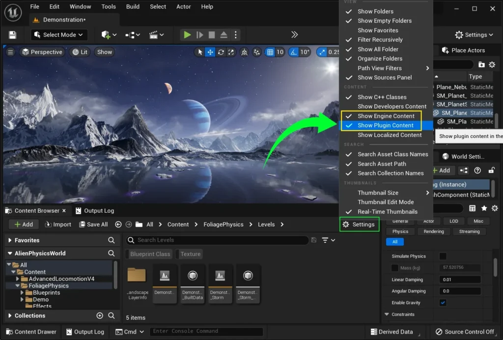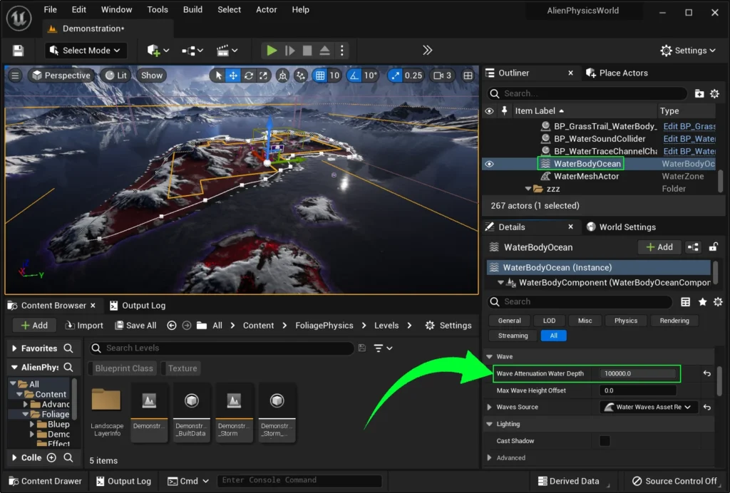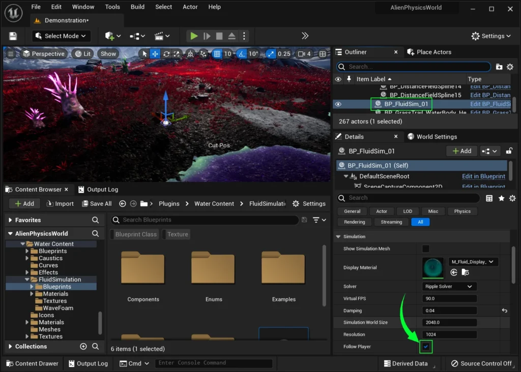 To use this tool, navigate to Content / AlienPhysicsWorld / Blueprints / Water