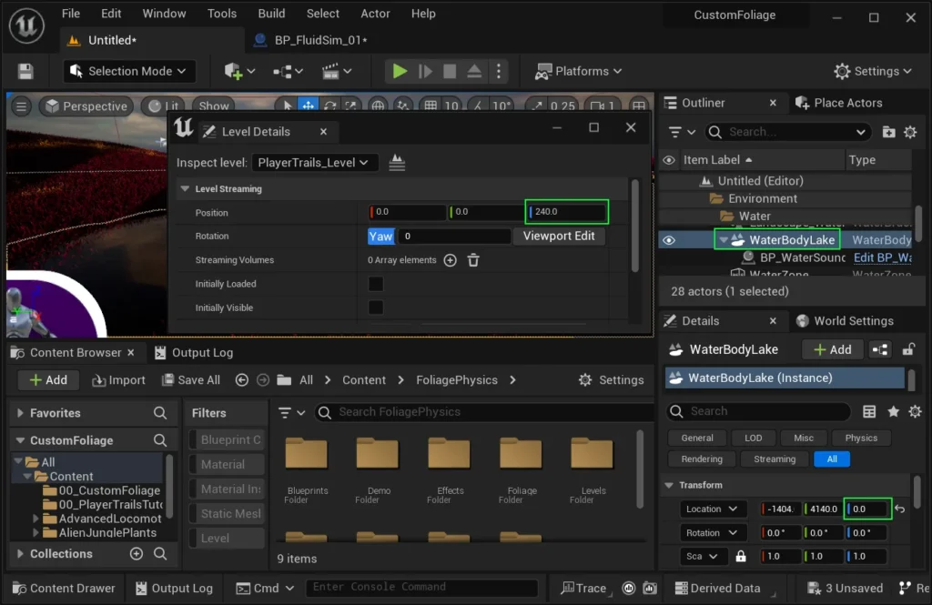 Next, open Content / FoliagePhysics / Blueprints / Environment / FluidSimHelper.
