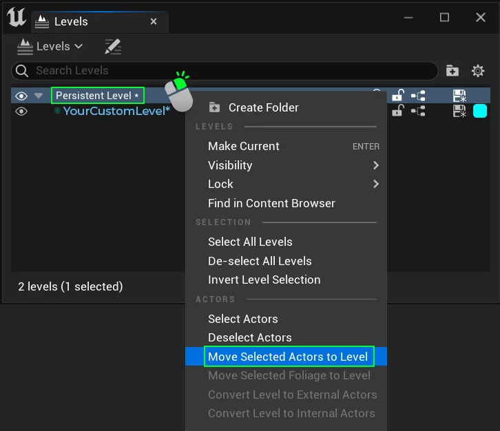 Before continuing with this method, please note that doing this will result in you transplanting all your level actors into a new level, which means your level blueprint will not be copied across with them.