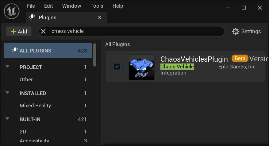 To ensure this asset works correctly, you’ll need to enable the ChaosVehiclesPlugin.
