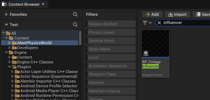 Child Actor Component > Child Actor Template > Foliage Influencer